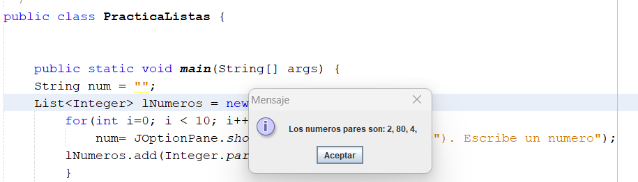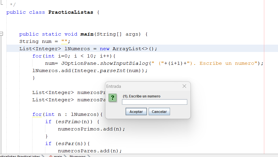 Ejercicio numeros de Stephany Lizeth Lopez Zea de Stephany Lizeth Lopez Zea - jueves, 18 de mayo de 2023, 19:25 Número de respuestas: 0 El ejercicio lo realice en NetbeansPRIMERO SOLICITUD DE NUMEROS PARA CAPTURARLOSNUMEROS PRIMOSNUMEROS PARES Enlace permanente