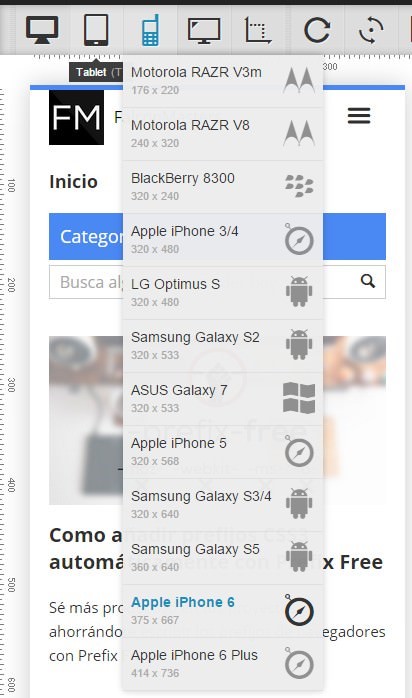 El primer simulador viene ya incorporado con la mayoría de navegadores web. A través de la tecla F12, Chrome pone a tu disposición herramientas para simular tu web en modo responsive o directamente según un dispositivo móvil concreto.