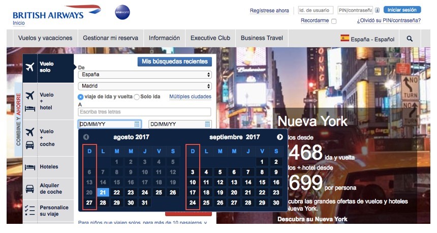 Buena práctica: En todas las páginas donde se debe hacer una búsqueda por fecha, se usa (con más o menos variantes) el ya clásico datepicker. Su uso y apariencia están tan interiorizados por todos los usuarios, que se ha convertido en un estándar.