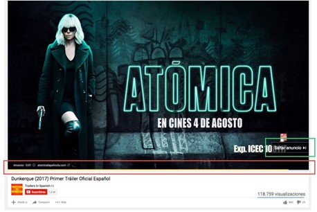 Mala práctica: Una mala práctica muy común la encontramos en los anuncios en portales de vídeo. Por un lado, se permite correctamente al usuario “Saltar el anuncio”, pero por el otro se limita su libertad de interacción al intentar navegar por la barra de control del video.
