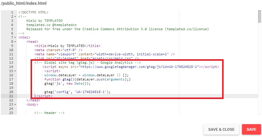 seguimiento de nuestro sitio web dentro del primer <HEAD>.