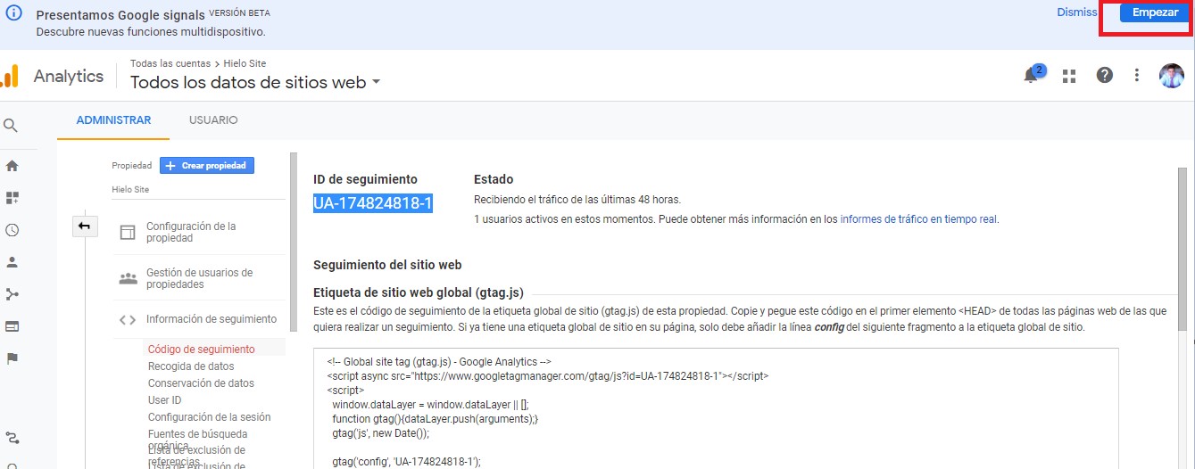 nuestro sitio web, podemos visualizar el ID se seguimiento
