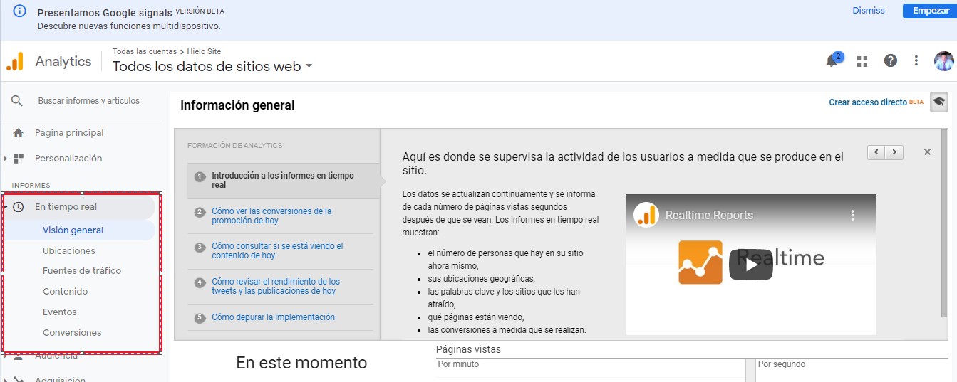 real” en la pestaña de Vista general, podemos ver los datos más relevantes para