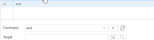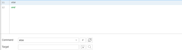 Este comando es similar al if, donde lo que hace es evaluar una expresión JavaScript ingresando en el campo Target la condición a tratar, se inicia con el comando if continuada con los comandos a realizar en caso de que la condición sea verdadera, la diferencia se encuentra en que con el else se tiene un bloque de comandos en caso de que la condición sea falsa, para terminar el else se ingresa el comando con la instrucción end.