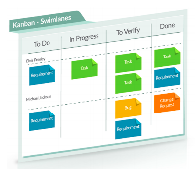 Kanban, escala desde un nivel de equipo hasta un nivel organizacional, con cada equipo teniendo su propia junta y la alta gerencia supervisando una junta organizacional.