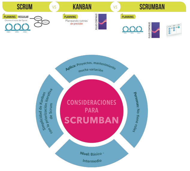 Enfoque híbrido, de inicio para transición de Scrum a Kanban.