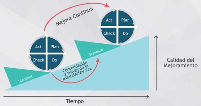 PDCA (Planear-Hacer-Verificar-Actuar o Planear-Hacer-Verificar-Ajustar) es un método de gestión de cuatro pasos iterativo utilizado en los negocios para el control y la mejora continua de procesos y productos.