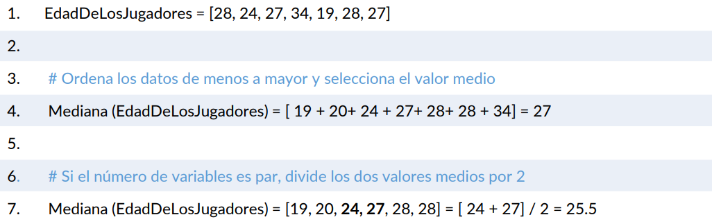 ● Las estadísticas de tendencia central (o medidas de tendencia central) son típicas para definir valores en conjuntos de datos