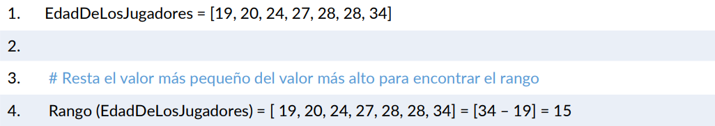 Rango: El rango de un conjunto de datos es la diferencia entre el mayor y el menor valor.
