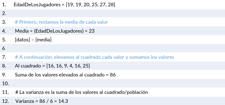 ● La varianza de un conjunto de datos se calcula siguiendo estos pasos: