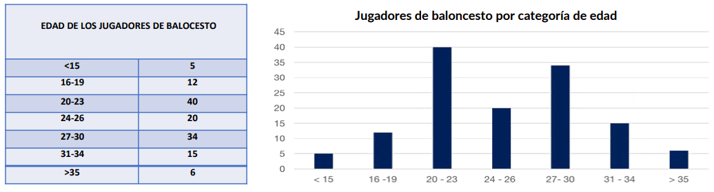 Figura 30: Distribución de Frecuencias de los Jugadores de Baloncesto.