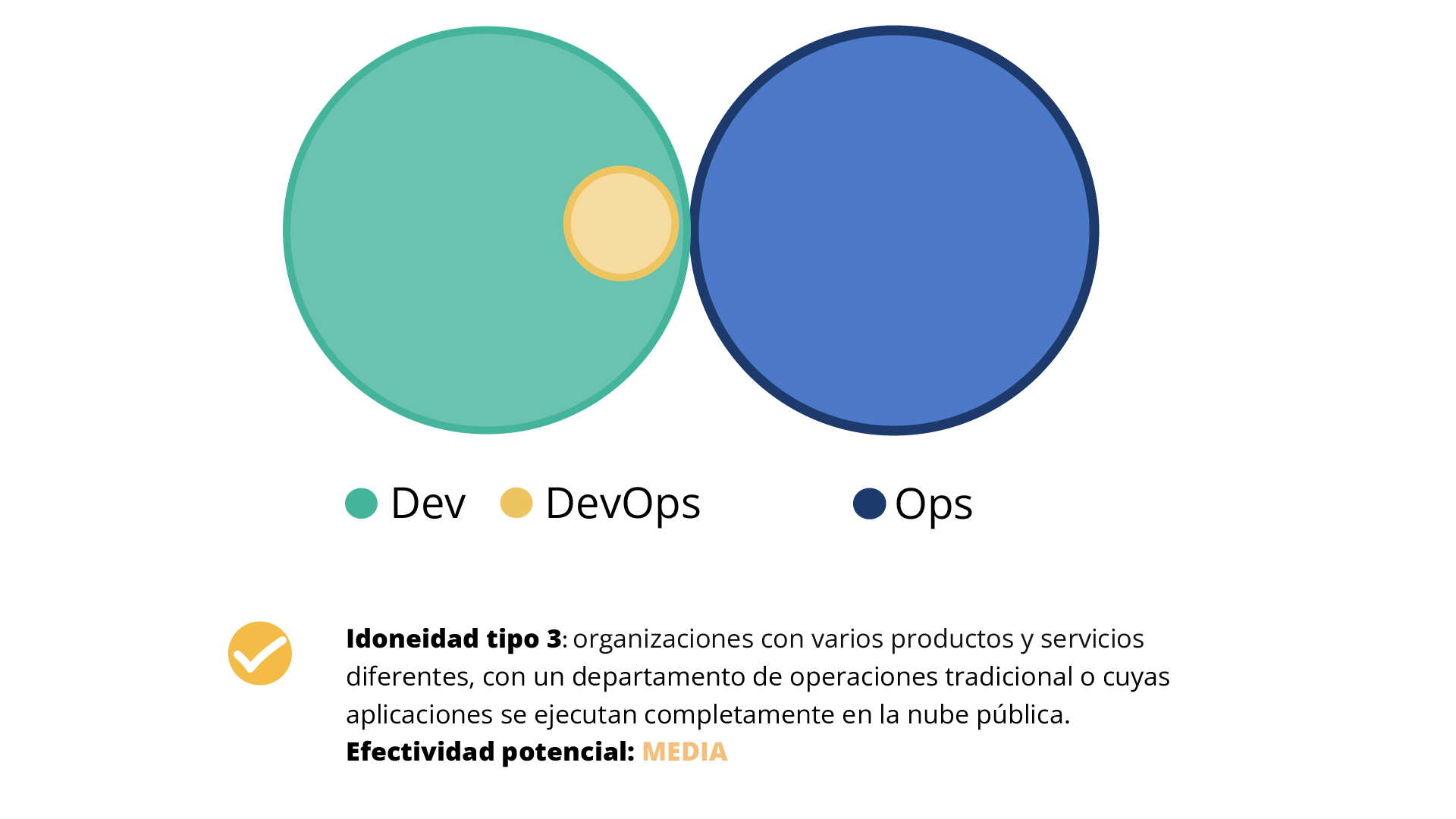 Lo que podría llamarse DevOps-as-a-Service podría ser una forma útil y pragmática para que una pequeña organización o equipo aprenda sobre automatización, monitoreo y administración de configuración, y luego tal vez avance hacia un Tipo 3 (Ops como IaaS) o incluso Modelo Tipo 1 (Colaboración de desarrollo y operaciones) a medida que crecen y contratan más personal con enfoque operativo.
