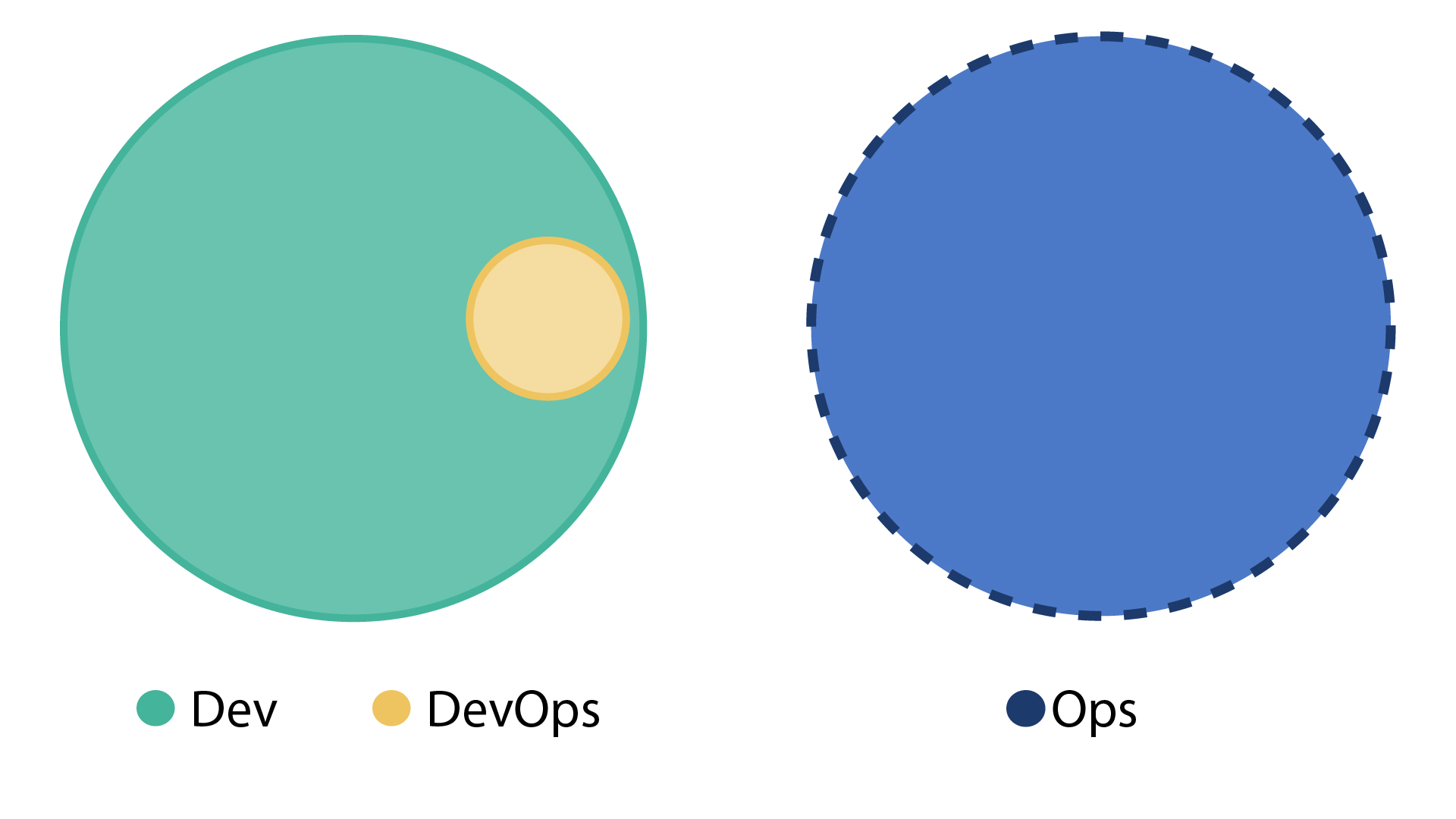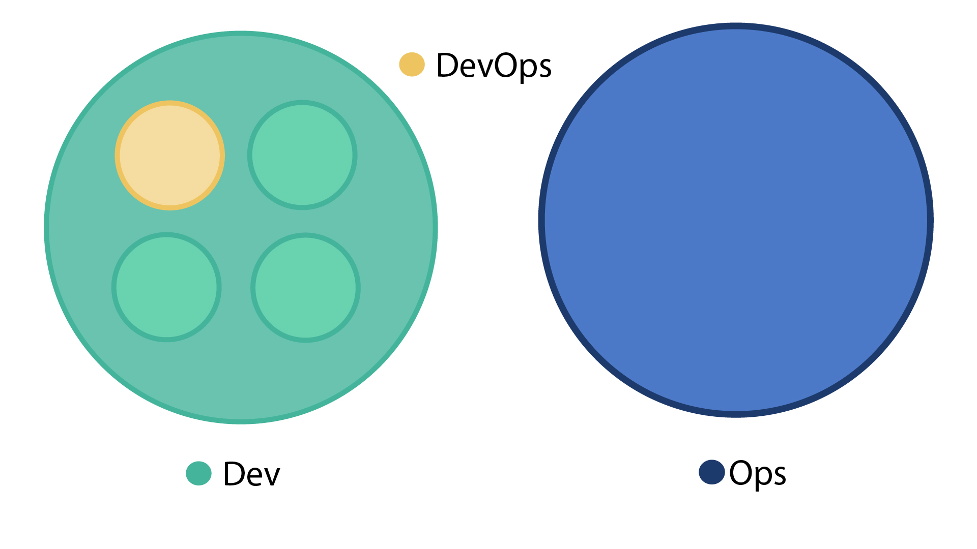 Un equipo (quizás un equipo virtual) dentro de Dev luego actúa como una fuente de experiencia sobre características operativas, métricas, monitoreo, aprovisionamiento de servidores, etc., y probablemente realiza la mayor parte de la comunicación con el equipo de IaaS. Este equipo sigue siendo un equipo de desarrollo, sin embargo, sigue prácticas estándar como TDD, CI, desarrollo iterativo, entrenamiento, etc.
