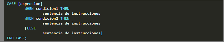 Este tipo de sentencia se usa para ejecutar un bloque de instrucciones basado en el valor de expresión de cambio. Una expresión debe ser de tipo INT, NUMBER, CHAR, entre otros. El valor de CASE debe ser un valor constante y tampoco se puede duplicar.