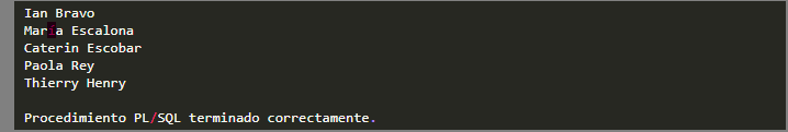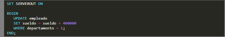 Después escribimos el siguiente código PL/SQL.