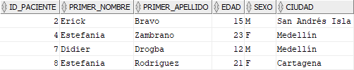 Al ejecutar el script anterior nos imprime los nombres de los pacientes que tienen una edad superior a 24 años.