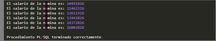 Al ejecutar el script observaremos como nos imprime el salario de la nómina cada vez que se ingrese un nuevo empleado.