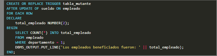 Ahora vamos a ver como ocurre una tabla mutante y como arreglar este error. Utilizaremos la tabla EMPLEADO.