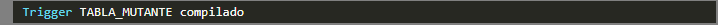Como se pudo notar, nos mostró un error de tipo tabla mutante; para solucionar esto, simplemente debemos comentar o eliminar el FOR EACH ROW que tenemos en nuestro trigger.