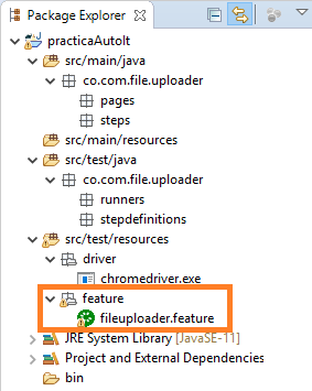 En el directorio src/test/resources creamos dos paquetes que tendrán como nombre feature y driver.