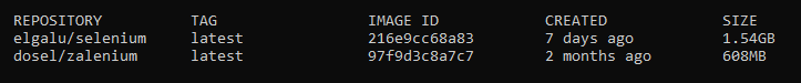 Una vez descargadas las imágenes mencionadas usamos el comando "docker images" para ver que se hayan descargado correctamente.