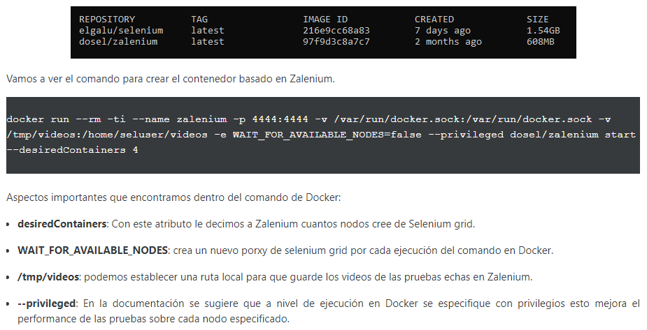 Vamos a ver el comando para crear el contenedor basado en Zalenium.
