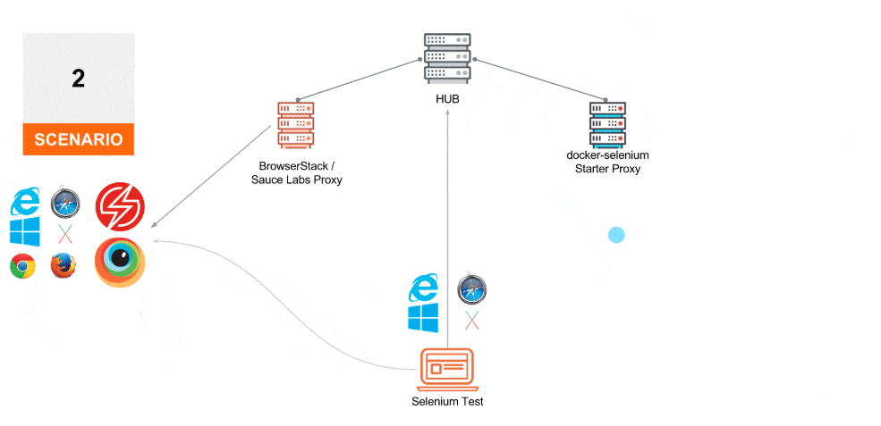 La arquitectura de Zalenium esta nos propone dos escenarios para su utilización, uno de manera local y otra a través de un servicio de ejecución de pruebas en la nube.
