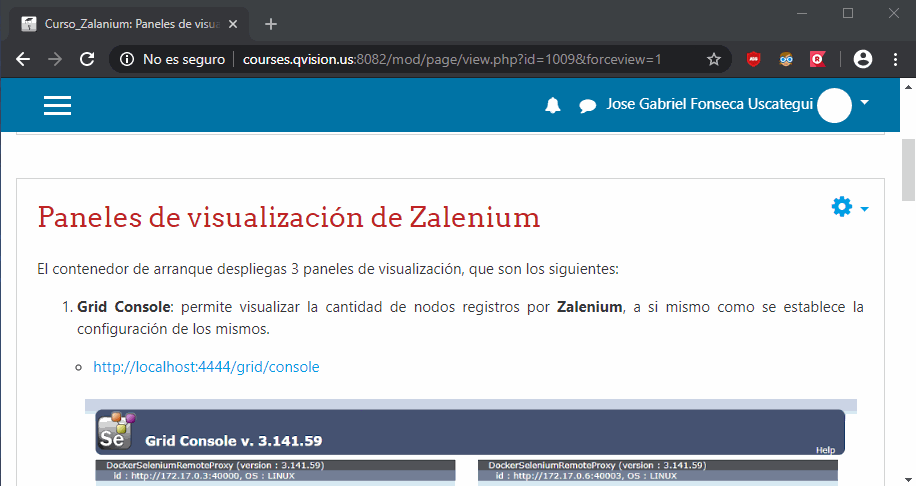 Grid Console: permite visualizar la cantidad de nodos registros por Zalenium, a si mismo como se establece la configuración de los mismos.