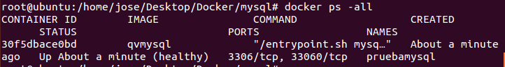 Una vez creado el contenedor, este será iniciado inmediatamente y podemos verlo con el siguiente comando.