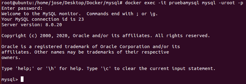 Finalmente ejecutamos el siguiente comando para ingresar al contenedor, y después cuando se solicite la contraseña de acceso la debemos ingresar.