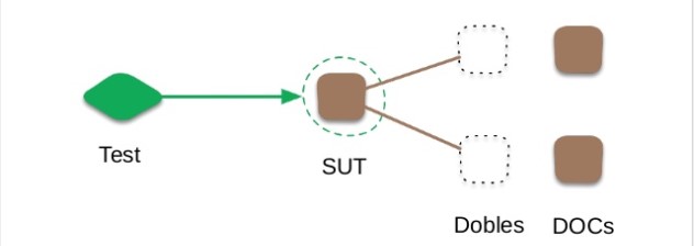 Como se puede apreciar en la imagen, el SUT no tiene interacción con los componentes de los cuales depende (DOCs), por esta razón, se dice que la prueba es solitaria. Esto permite probar escenarios que podrían ser difíciles de probar con los DOCs reales