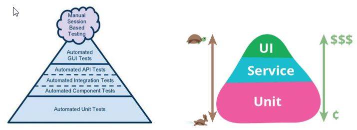 De acuerdo a lo anterior, podemos deducir que se recomienda tener una mayor cantidad de pruebas unitarias, las cuales como ya hemos visto se ejecutan de forma muy rápida y su mantenimiento es muy puntual (se recomienda que el 70% sean unitarios), en segunda instancia, se recomienda tener un gran número de pruebas que apunten a la lógica del negocio (Componentes, Integración y APIs), estás tienen la particularidad que apuntan directamente a la lógica del negocio y aunque no son tan rápidas como las pruebas unitarias, si suelen ser mas rápidas que las pruebas a nivel de interfaz de usuario (se recomienda que el 20% sean test a este nivel), y por último, tendríamos las pruebas a nivel de la interfaz, ya que en los niveles anteriores se han depurado la gran parte de los defectos, de manera que el foco de estas pruebas debería ir dirigido a temas de look & feel, UI, y similares (el 10% restante de los test).
