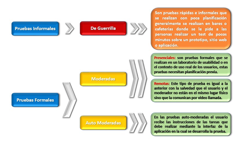 pruebas informales llamadas también pruebas de guerrilla; y en segundo lugar las