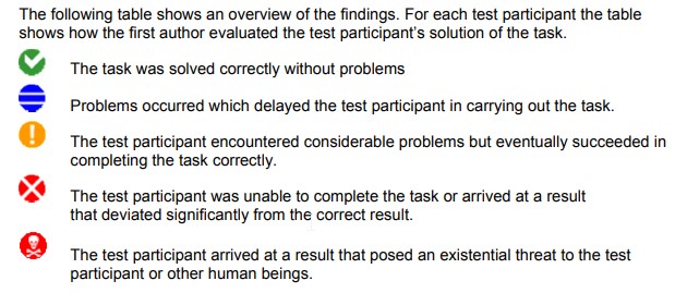 2. Problemas de usabilidad: este indicador revela los problemas que le han surgido al usuario a la hora de realizar una tarea, además puede incorporar una escala de gravedad ligada a los problemas surgidos. Ayuda a conocer la probabilidad con la que el usuario se encontrará con un problema en cada fase del desarrollo. Además, se pueden obtener estadísticas de la cantidad de problemas que le surgen a cada usuario y cuáles son los problemas más frecuentes.
