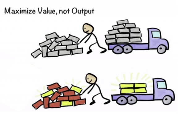 Los equipos de trabajo deben de concentrarse más en producir un producto final y de alta calidad, que no una alta cantidad de productos poco funcionales y de baja calidad, es por ello que se debe maximizar el valor de producto, mas no la producción del producto.