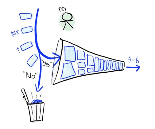 Idea clave: Una parte importante del rol de Product Owner es decir "No" para que los trabajos pendientes no sigan creciendo. ¡Un backlog con solicitudes que tienen más de 6 meses no es muy ágil!