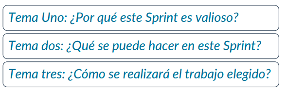 La planificación del Sprint aborda los siguientes temas: