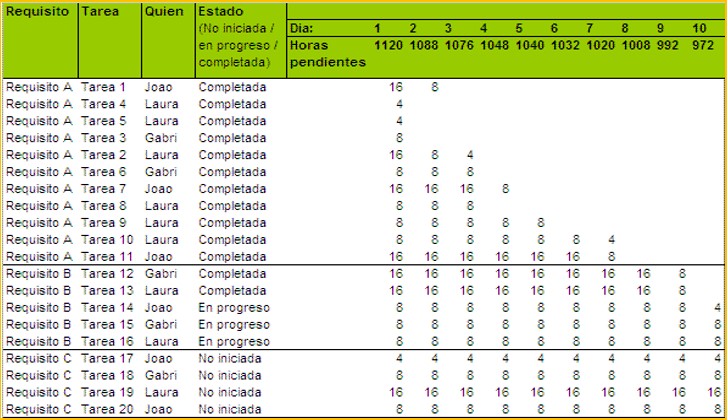 Figura.- Ejemplo de Sprint Backlog.