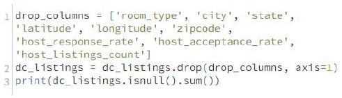 • Elimine las 9 columnas de las que hablamos anteriormente de dc_listings: