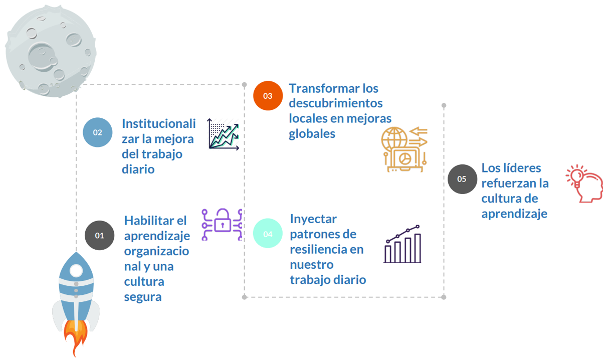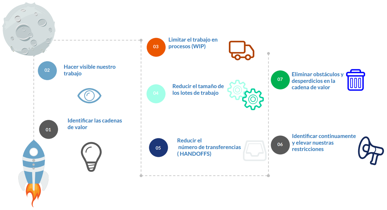 Pensamiento sistémico, retroalimentación, experimentación y aprendizaje continuo.