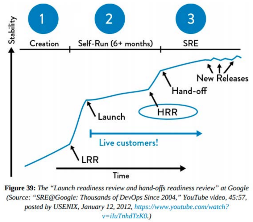La LRR debe realizarse y aprobarse antes de que cualquier nuevo servicio de Google se ponga a disposición del público y reciba tráfico de producción en directo, mientras que la HRR se realiza cuando el servicio pasa a un estado gestionado por operaciones, normalmente meses después de la LRR.