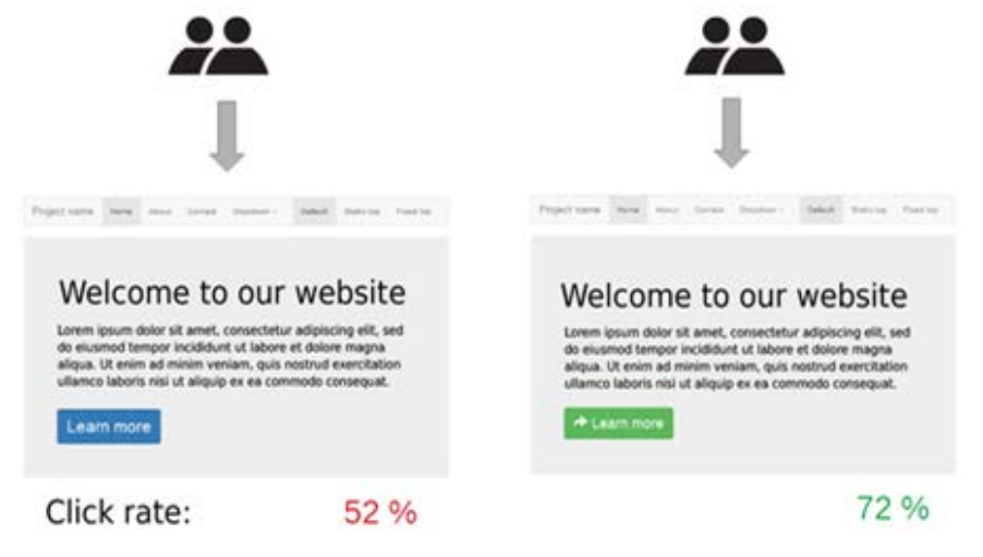 La técnica A/B más comúnmente usada en la moderna práctica de UX implica un sitio en el que los visitantes se seleccionan aleatoriamente para exhibir una de las dos versiones de una página, un control (el "A") o un tratamiento (el "B").