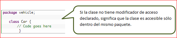 Si un atributo de la clase no tiene modificador de acceso, entonces éste es solamente accesible desde una clase dentro del mismo paquete