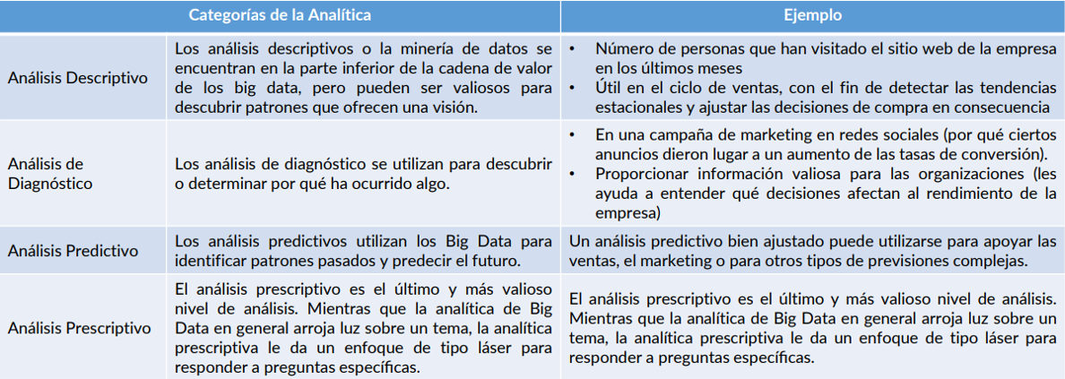 5. ¿Qué tipo de análisis se pueden hacer con Big Data?