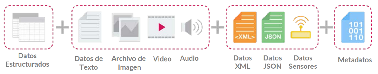 Los Big Data se caracterizan por la variedad de sus fuentes de datos e incluyen datos no estructurados o semi-estructurados, las soluciones de Big Data necesitan, por ejemplo, ser capaces de procesar imágenes de archivos de audio.