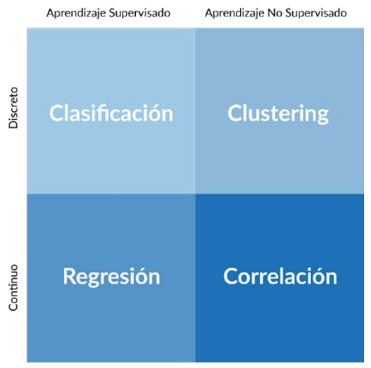 En el ámbito empresarial y científico, la mayoría de las organizaciones distinguen cuatro formas diferentes de identificación de patrones en un conjunto de datos: