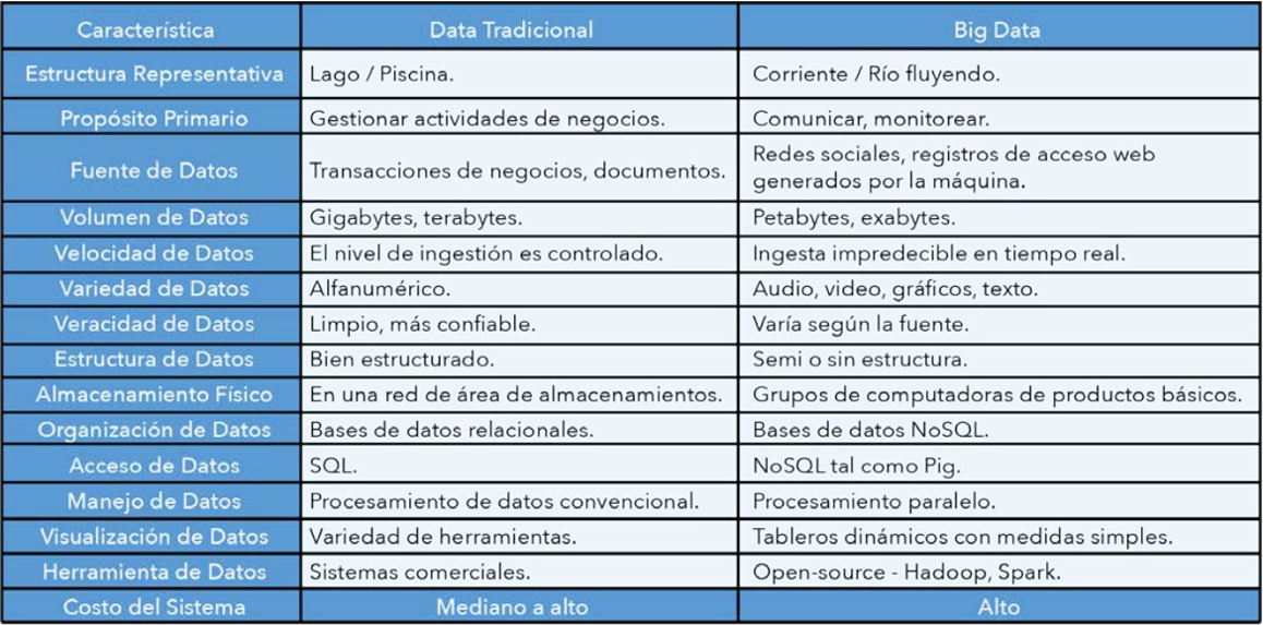 ● Conocer las diferencias entre el Big Data y los datos convencionales.