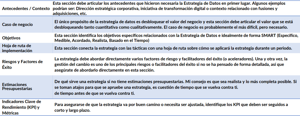 Figura 17: Lista de control para un documento de estrategia de Big Data