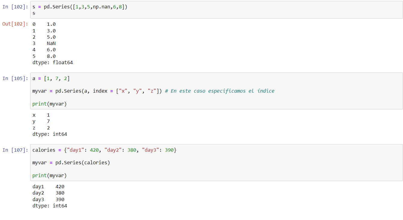 Pandas tiene un conjunto de funcionalidades y todas empiezan a partir de una serie. Una serie es un vector unidimensional sujeto a un índice que puede especificarse o no.