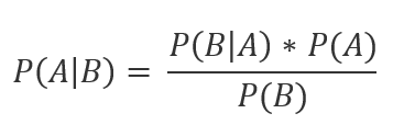 Es decir, la probabilidad de A dado que ocurre B, es igual a la probabilidad de que ocurra B dado que ha ocurrido A, multiplicado por la probabilidad de que ocurra A, dividido por la probabilidad de que ocurra B.